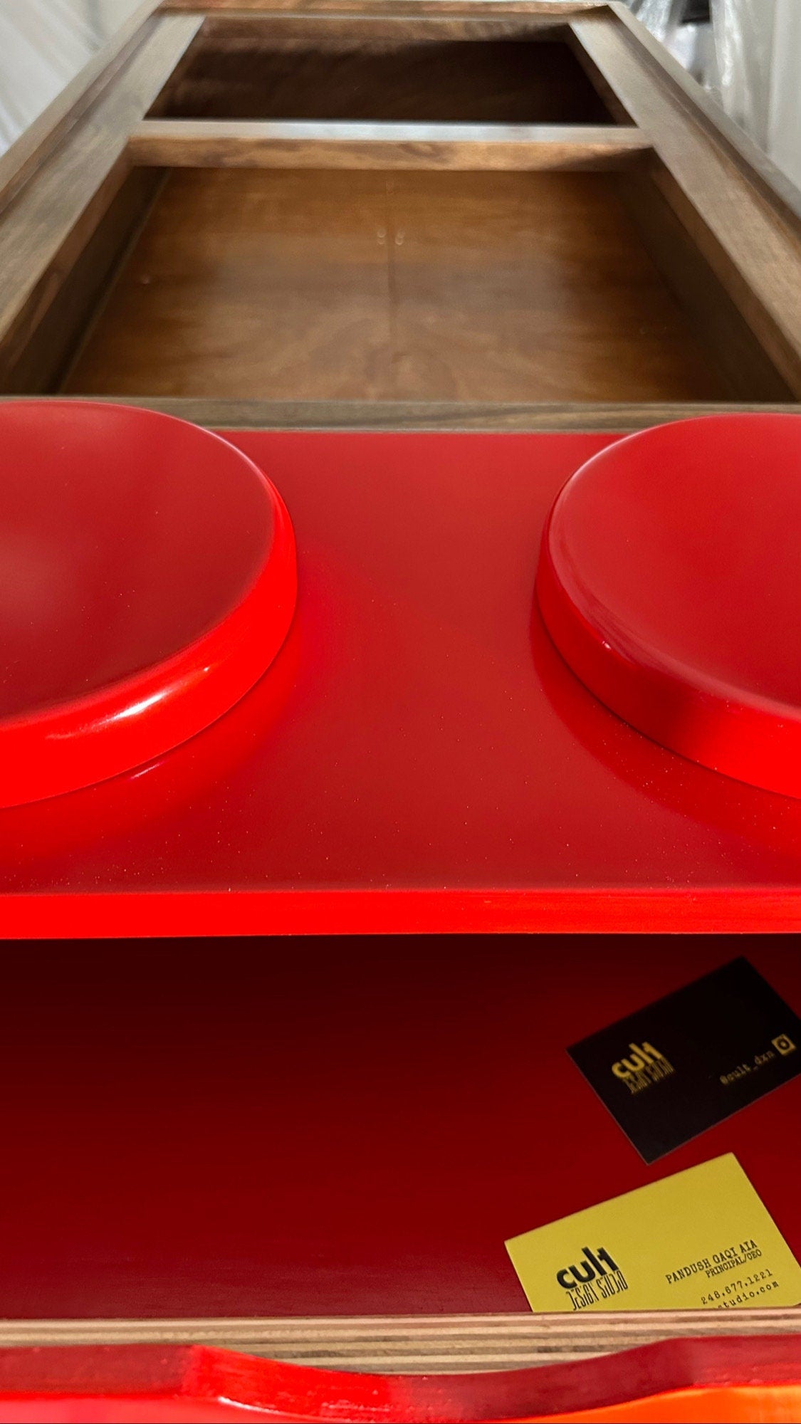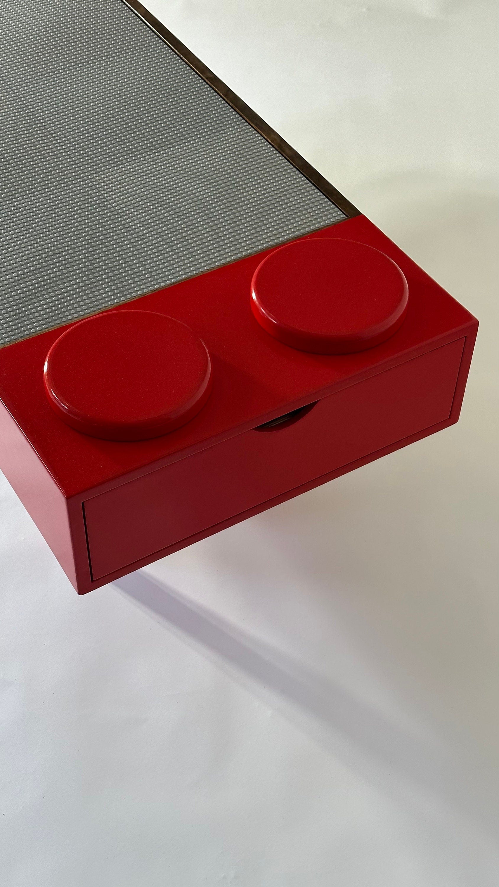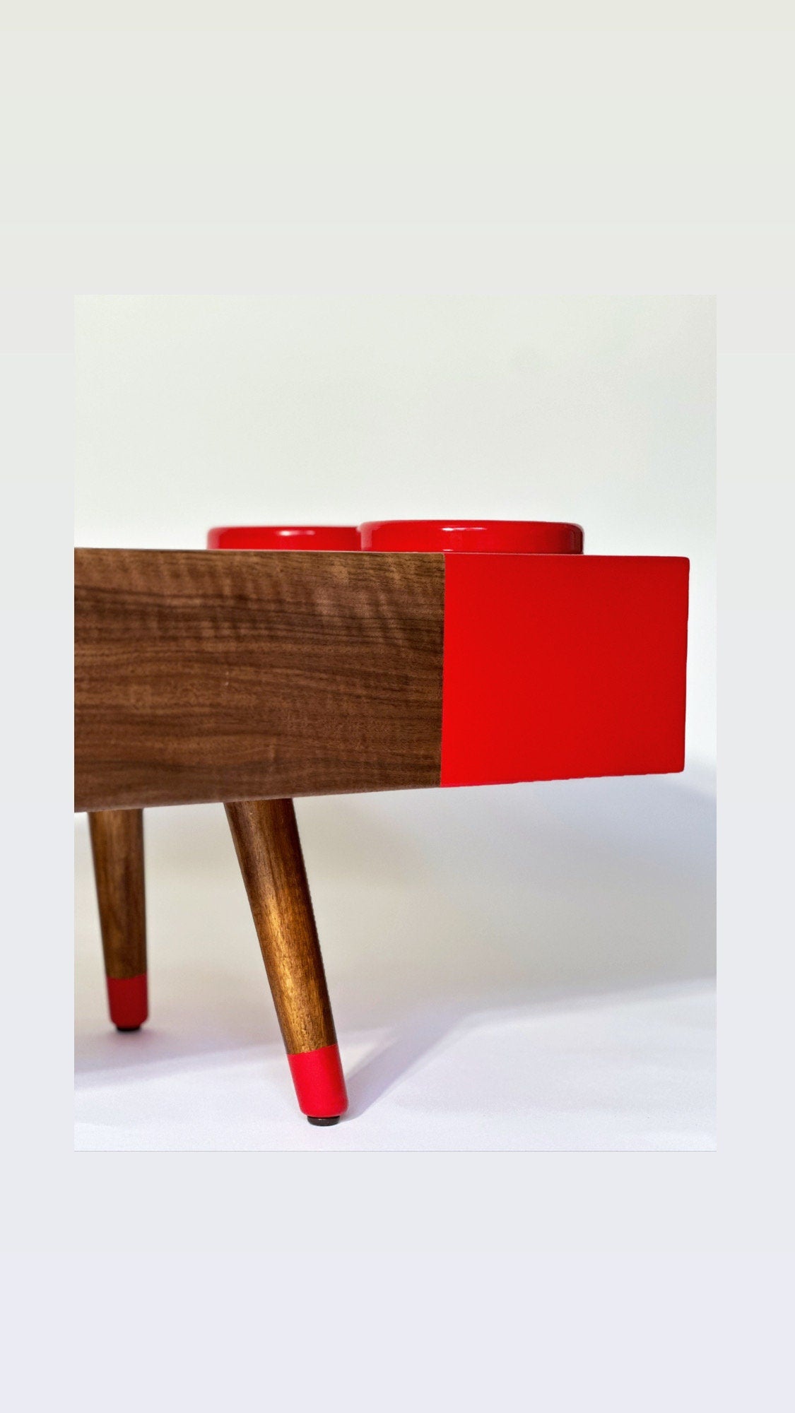This game console table, toy storage, and brick and interlocking surface top is hand made with the highest quality and VOC free materials. It belongs in your living room, kids room (up to 99+ years of age). The LEGO-compatible surface makes for a fantastic creative escape and world building for anyone who wants a dedicated furniture to display a completed work of art. Walnut hardwood makes for a high end furniture piece that transforms easily into a chalkboard or dry-erase surface for unencumbered fun! Made for brick building fanatics or just casual play, it never has to be put away into storage. It is a stand alone work of art that can be used as a central coffee table for anyone who enjoys game night with friends or just high quality mid-century inspired furniture. The design offers many hidden compartments and customizable parts that make it a unique gift for that special person in your life.